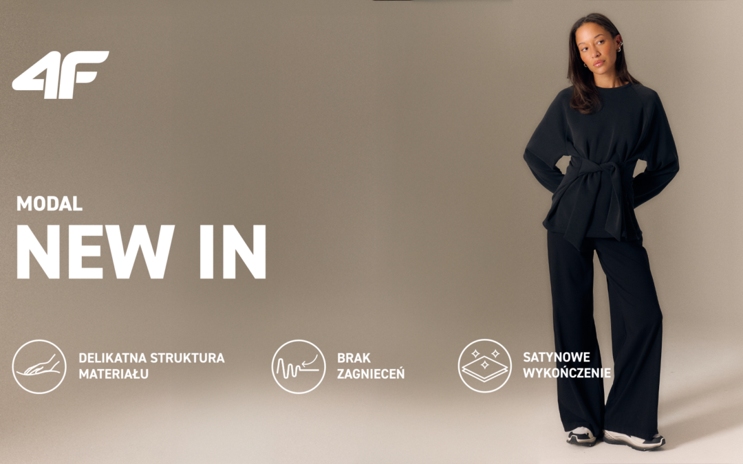 MODAL, który łączy ruch i minimalizm. Miękkość premium, satynowy detal, komfort, który zostaje z Tobą. Kolekcja dostępna w salonach 4F i online.